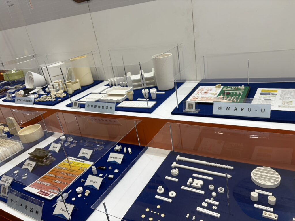 セラミックス関連はブース数が約10程度と少なめでしたが、高精度加工製品の展示が中心で、需要の継続を実感しました。また、愛知県陶磁器工業協同組合の共同ブースでは、地域企業の技術力にも触れることができました。